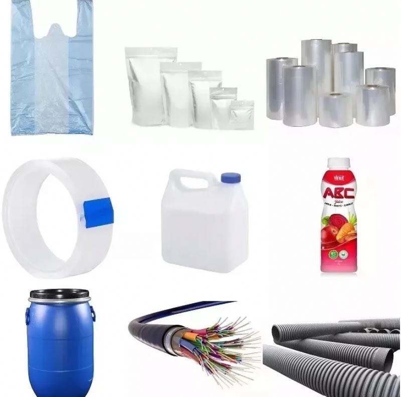 Grado alimenticio, Grado de película, Bolsas, Bolsas de camiseta, Película soplada, Bolsas de basura, Revestimiento de paredes múltiplesAplicación