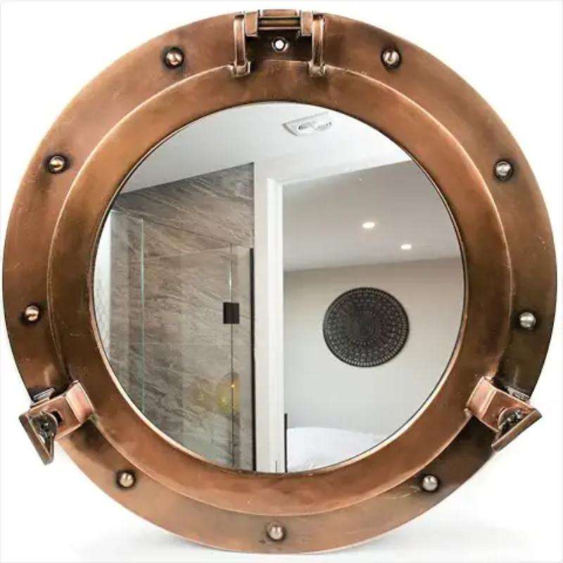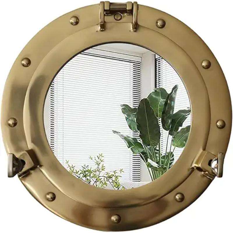 Ventana de ojo de buey de latón duradero, espejo de cristal náutico, forma redondeada sólida con bisagra, decoración del hogar, suministros marinos inspirados en bajos