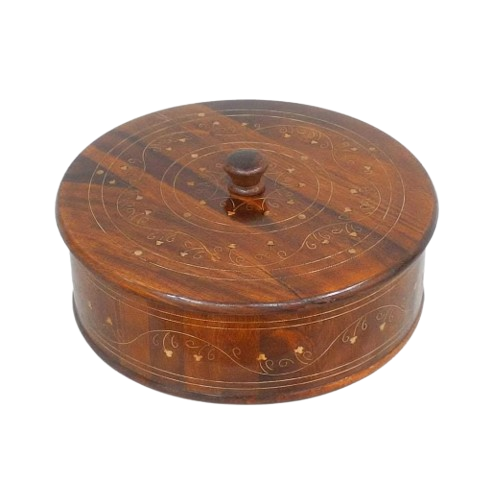 Caja para Roti de Color Marrón Resistente, Tapa de Madera Natural, Apta para Alimentos, Vajilla para Bodas y Restaurantes, Caja Redonda de Madera para Roti