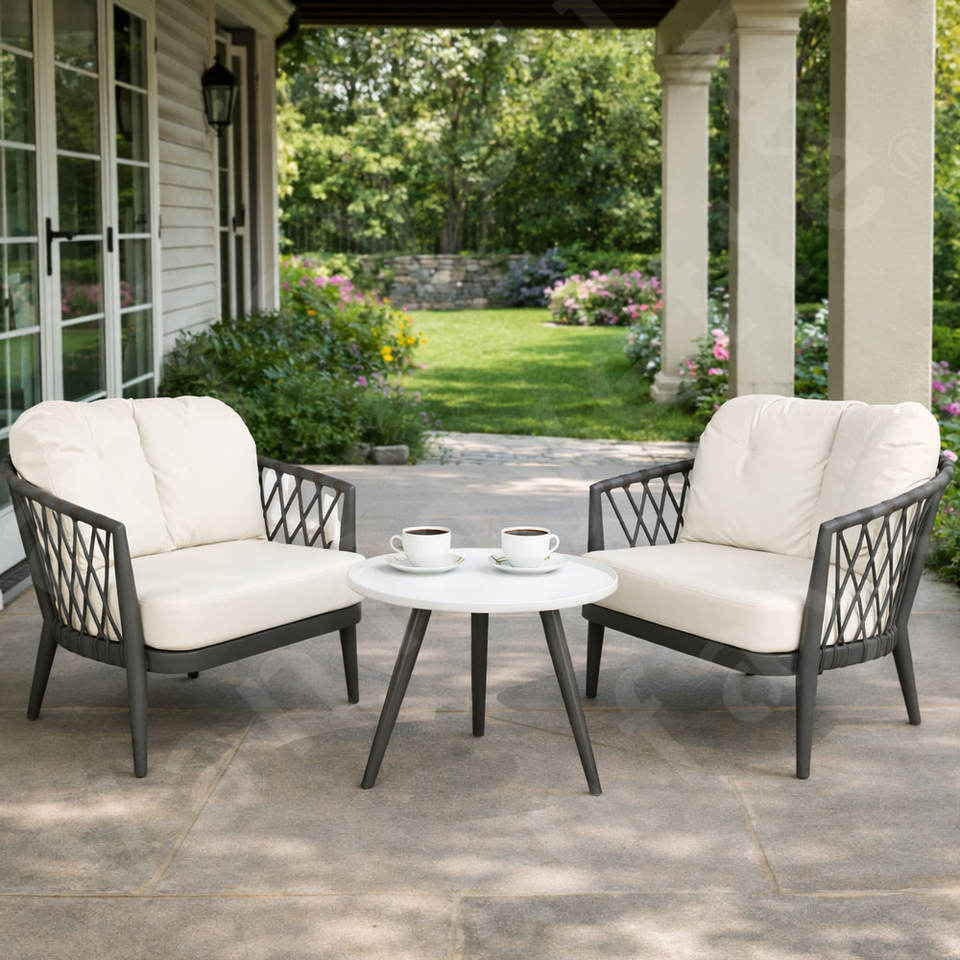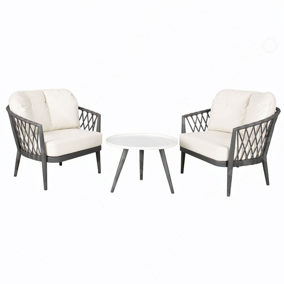 Durable Calista Outdoor Rope Weaving Garden Set Sofá Silla de calidad con cómodos cojines suaves y mesa auxiliar redonda