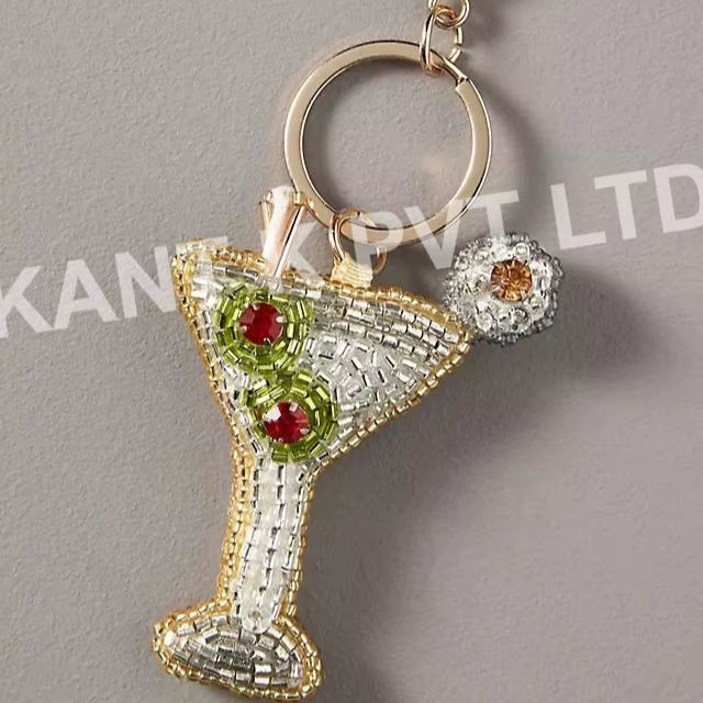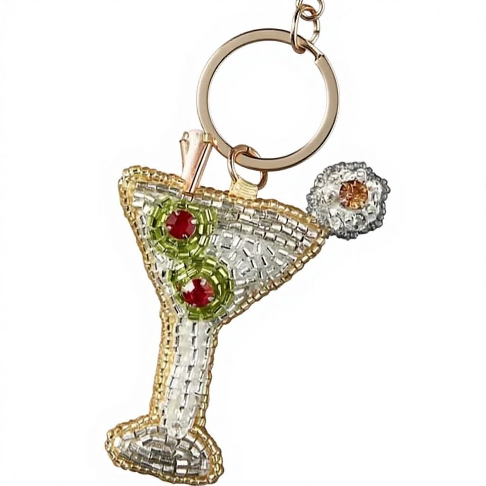 Llavero de cristal de cóctel duradero con cuentas, colgante artesanal para bebidas, accesorios estéticos para fiestas, bonito regalo para mujer