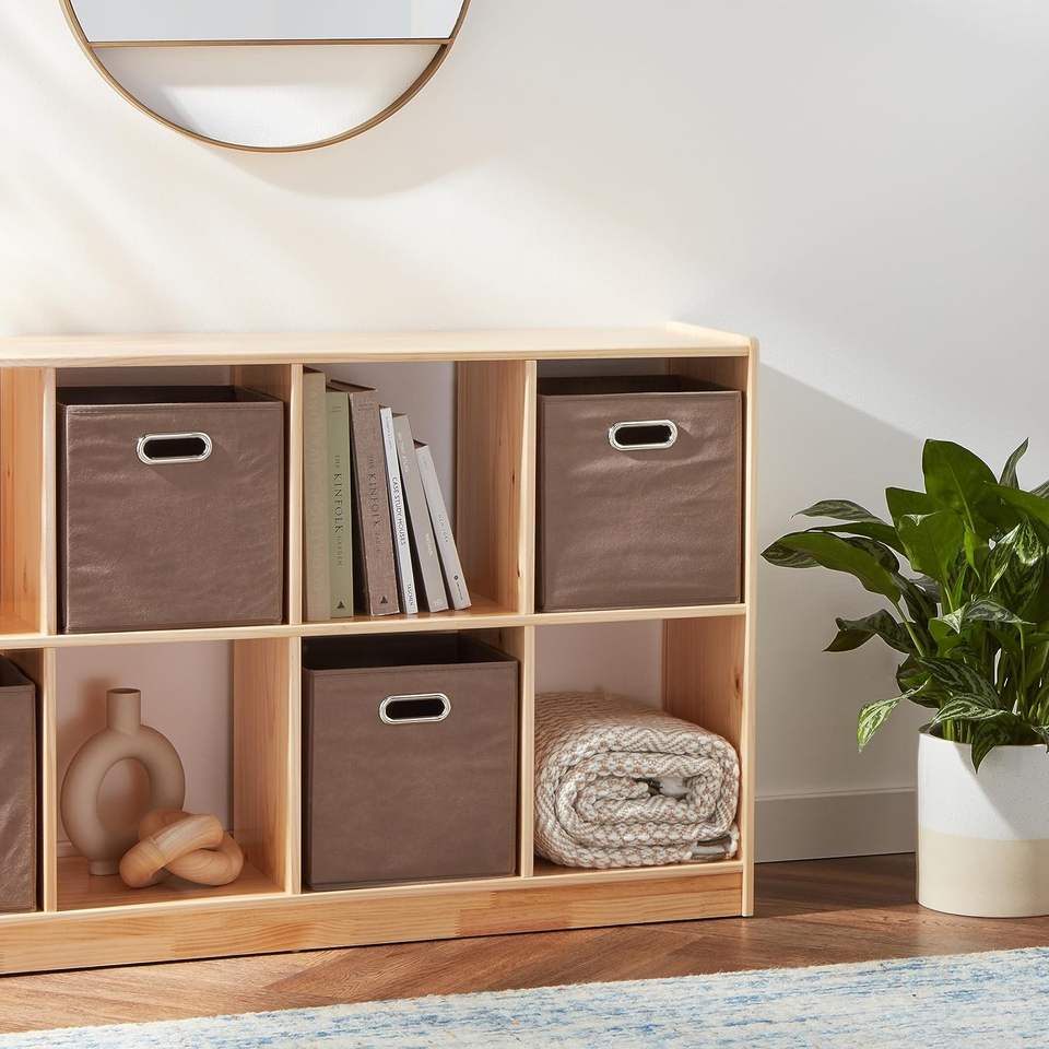 Organizadores de Almacenamiento Colgantes Modernos de Tela Cuadrada Plegable y Duradera, Paquete de 6, Color Taupe, Tamaño Grande para Ropa de Armario