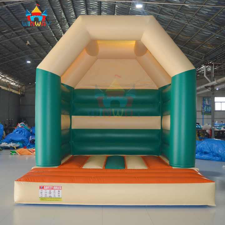 Castillo Inflable Comercial Resistente, Clásico, Verde y Beige, Casa de Brinco Comercial para Alquiler en Fiestas y Eventos al Aire Libre