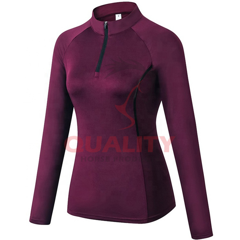 Camiseta de equitación para mujer, duradera, compresiva, de poliéster y spandex, capa base térmica, profesional, cómoda y flexible.