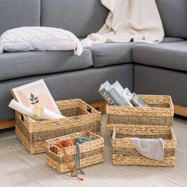 Durable Custom Rectangular Water Hyacinth Wicker Baskets With Handles for Storage, Gift Basket, Woven Basket for Kitchen