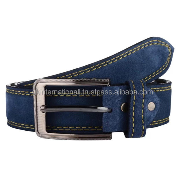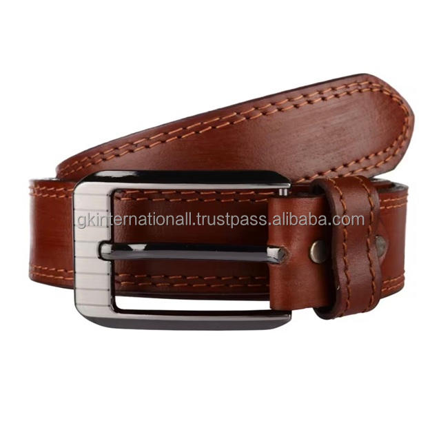Cinturón casual de cuero para hombre, hecho a mano con doble costura, en colores vibrantes y tallas personalizadas.