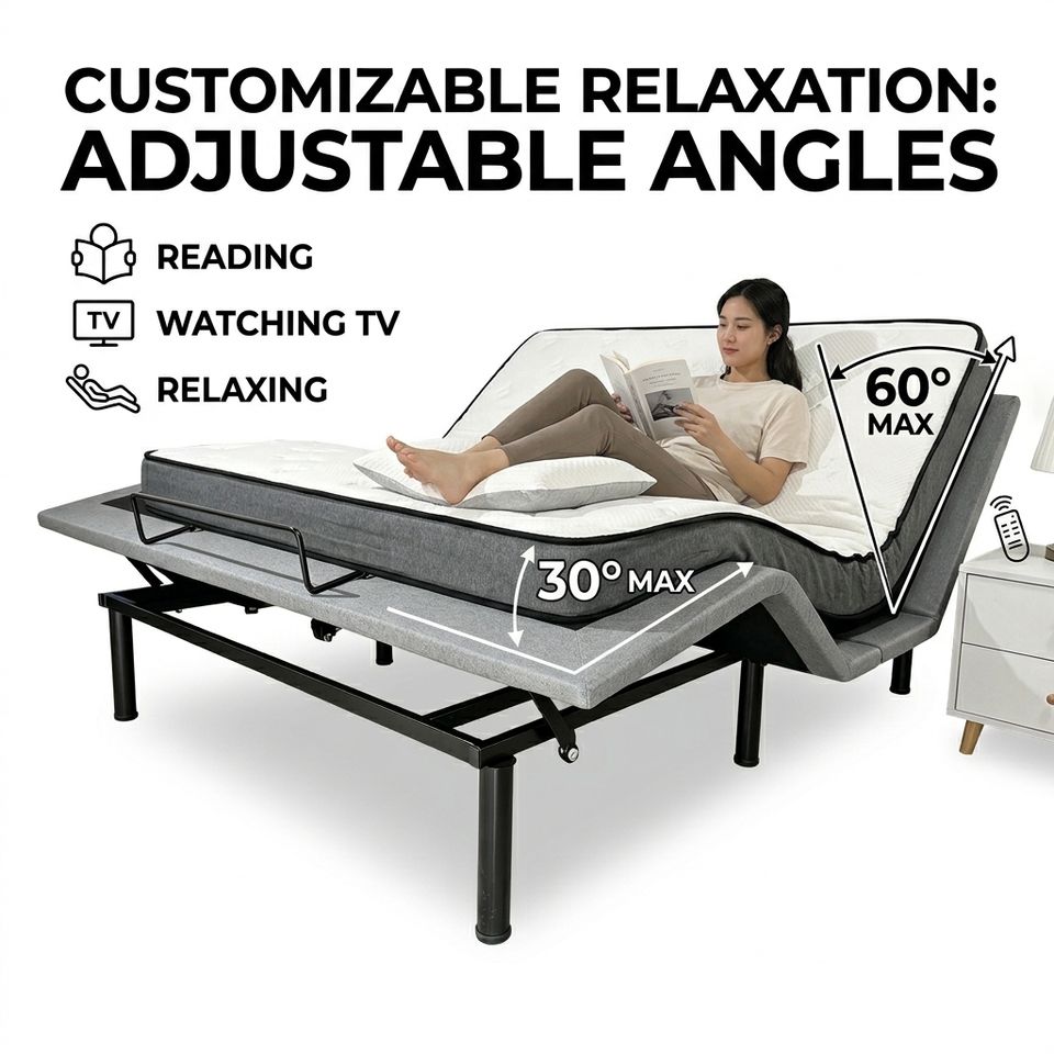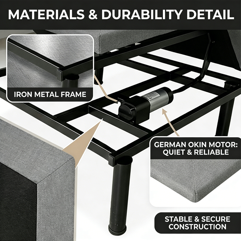Base de Cama Ajustable Externa Resistente con Control Remoto Inalámbrico, Sistema de Elevación Estable para Máximo Confort, Uso para Personas Mayores y Embarazadas