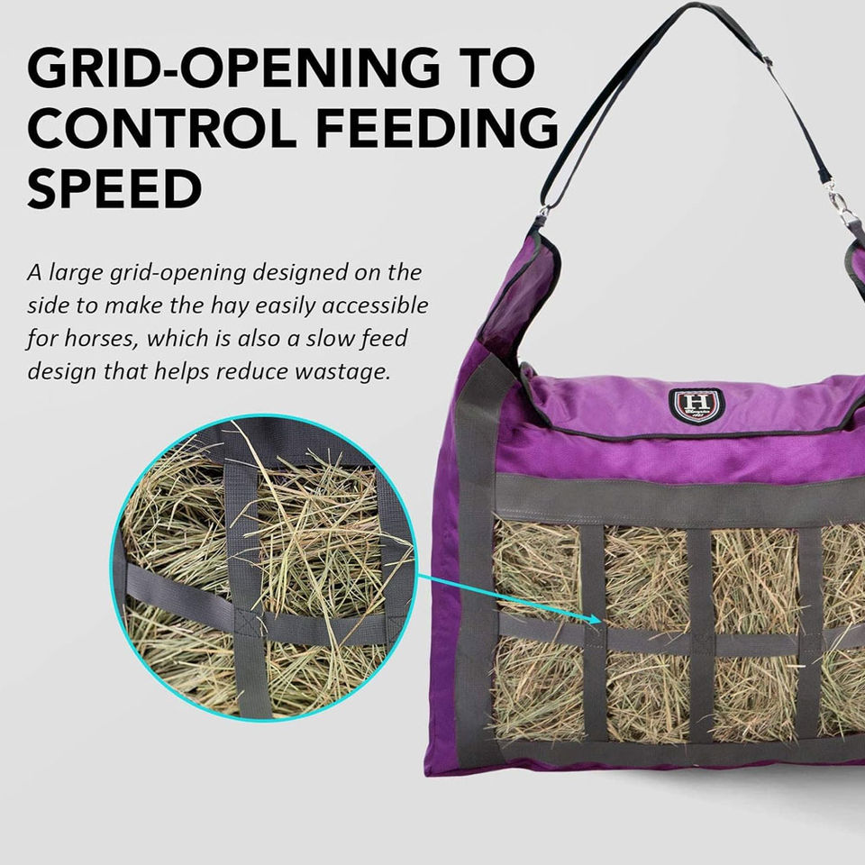 Bolsa de heno de alimentación lenta para caballos con apertura