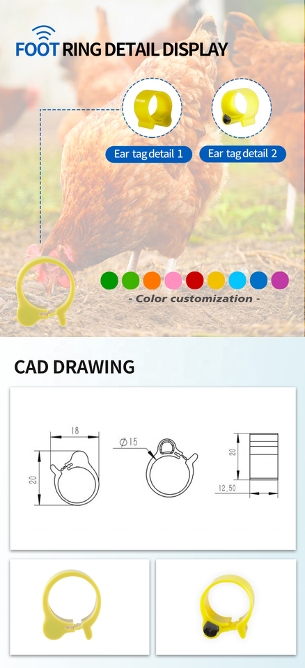 Bandas Duraderas para Piernas de Aves de Corral, Anillos con Clip para Bantam, Pinzón, Paloma, Lovebird, Coturnix, Codorniz, Nueva Condición