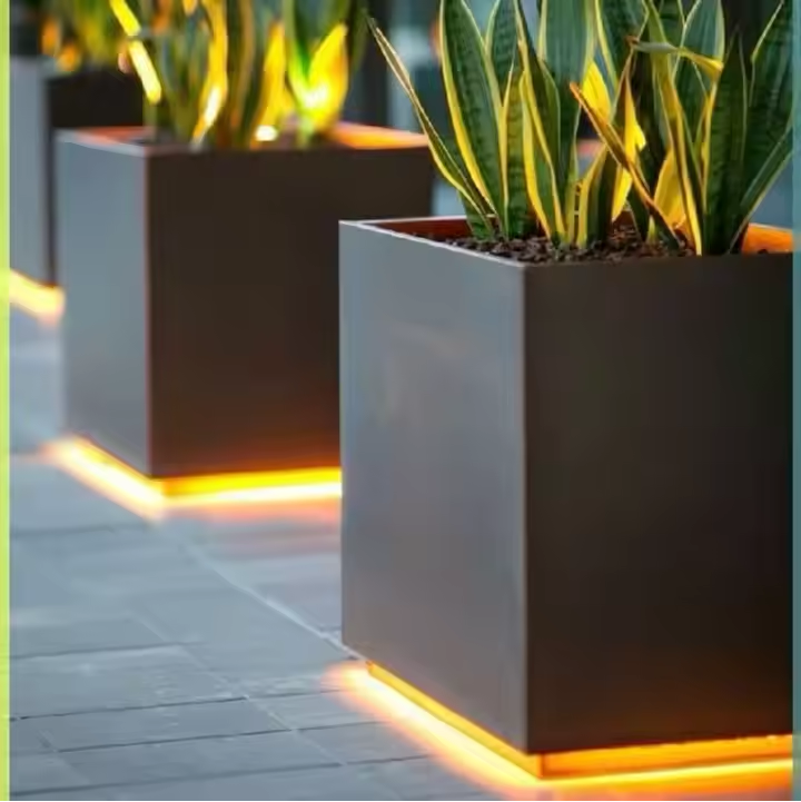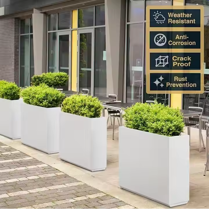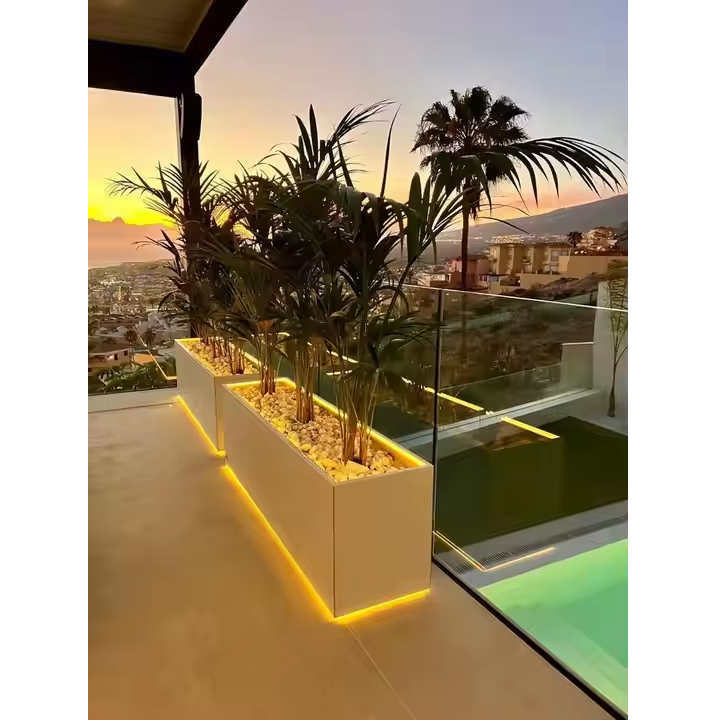Macetas rectangulares de fibra de vidrio FRP duraderas, decoración del hogar interior y exterior de estilo moderno con flores vivas artificiales