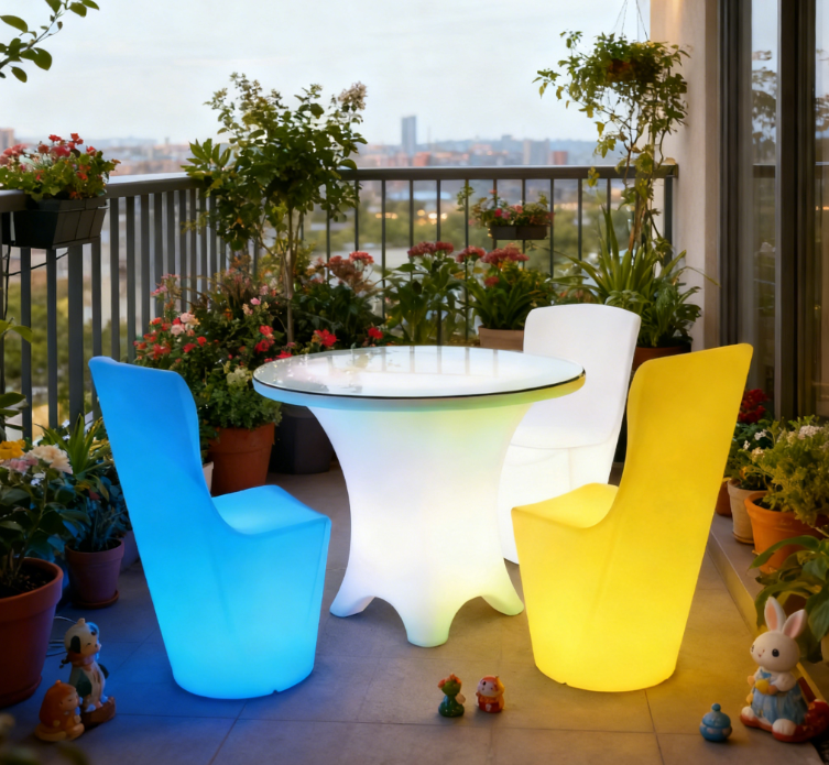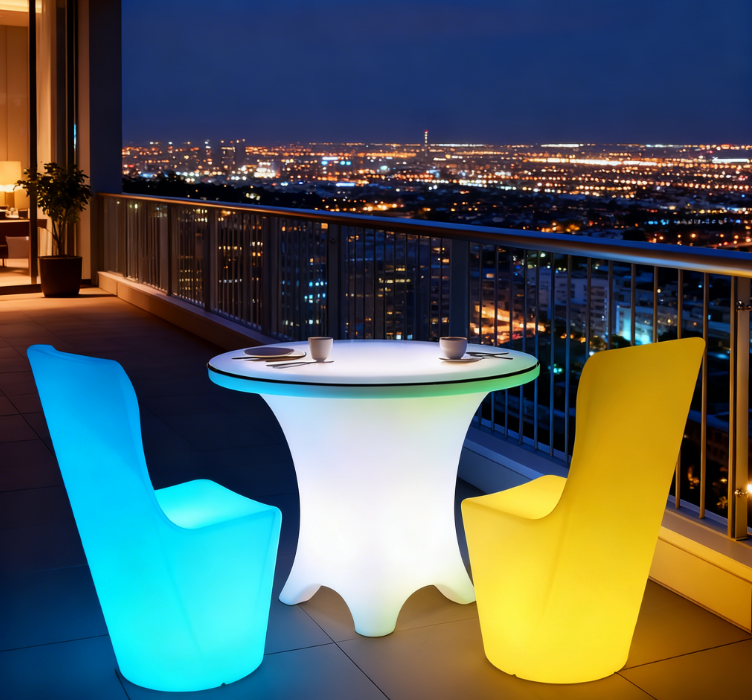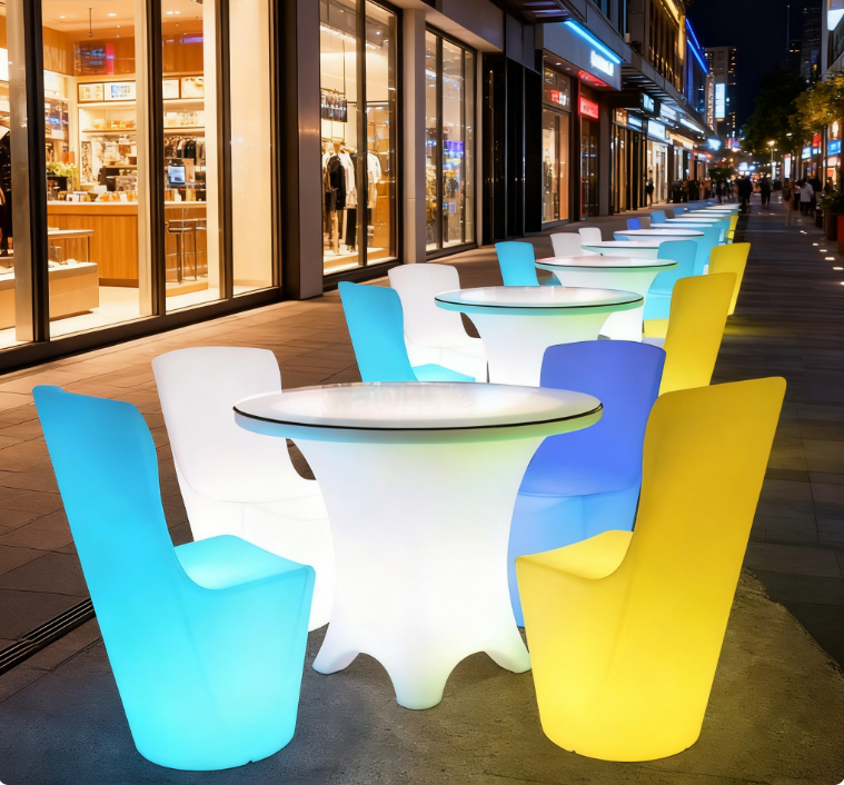 Mesa de cóctel elegante y duradera con sillas LED, iluminación de 16 colores, mobiliario luminoso, conjunto de mesa y sillas LED para bar y eventos