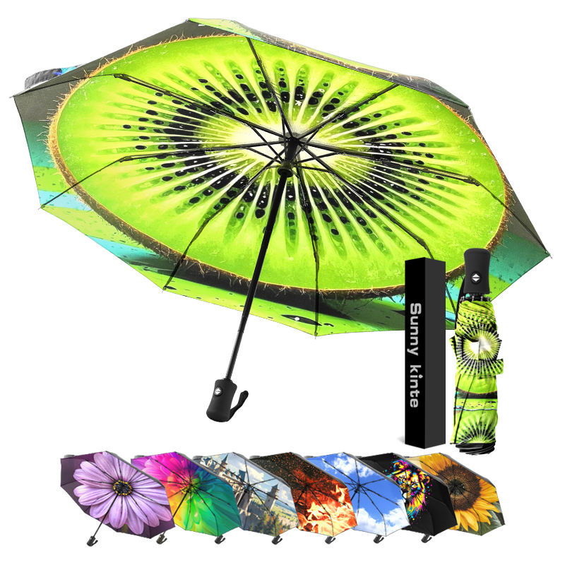 Durable impresión completa respetuoso con el medio ambiente 8 costillas compacto Auto abrir cerrar paraguas plegable para coche mochila monedero