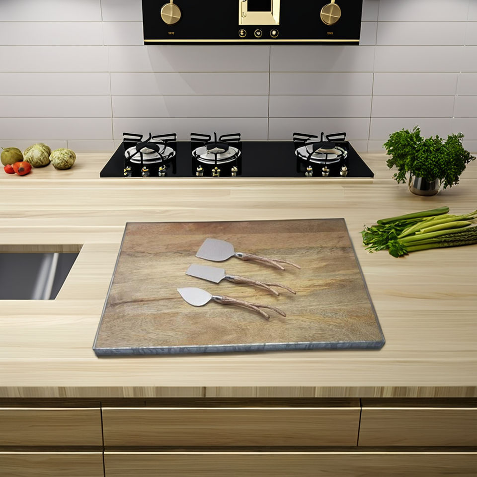 Tabla de cortar de madera natural galvanizada duradera de embalaje personalizado de madera de mango y tabla de queso Tabla de servir de diseño elegante