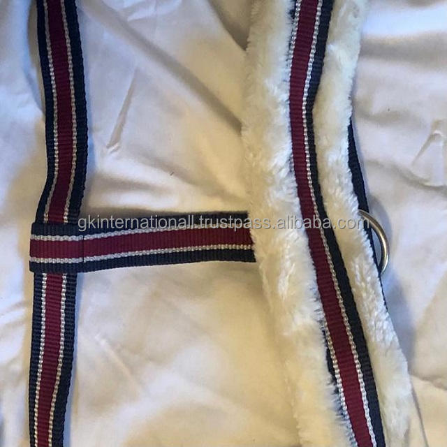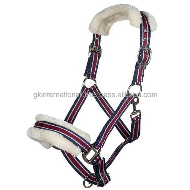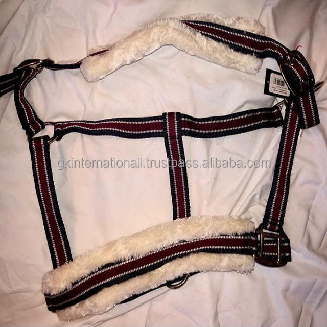 Cabestrillo de nailon 100% poliéster hecho a mano, con relleno de lana suave, visón, banda para la nariz y casco, hardware plateado fuerte