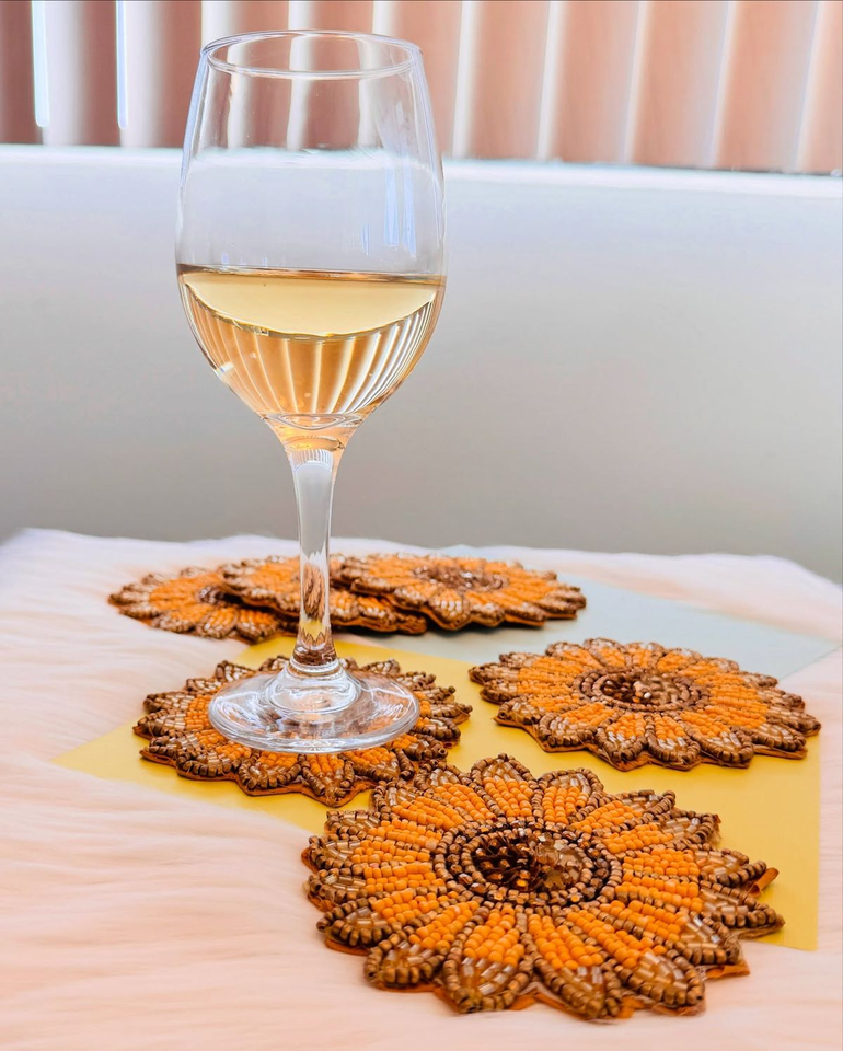 Posavasos bordado a mano con cuentas, diseño personalizado con cuentas de semillas para una mesa de lujo
