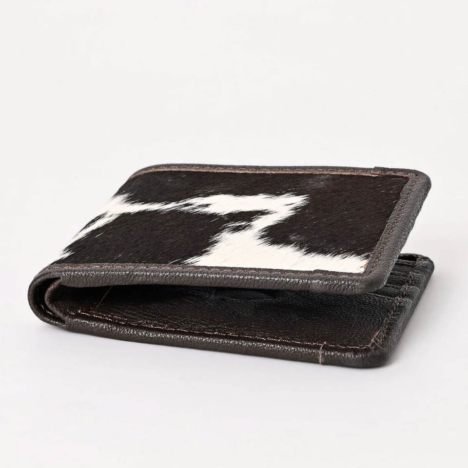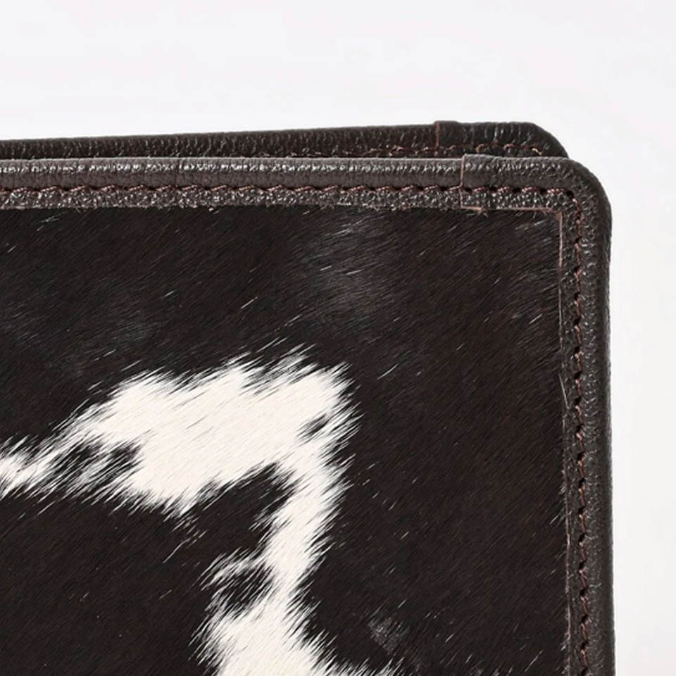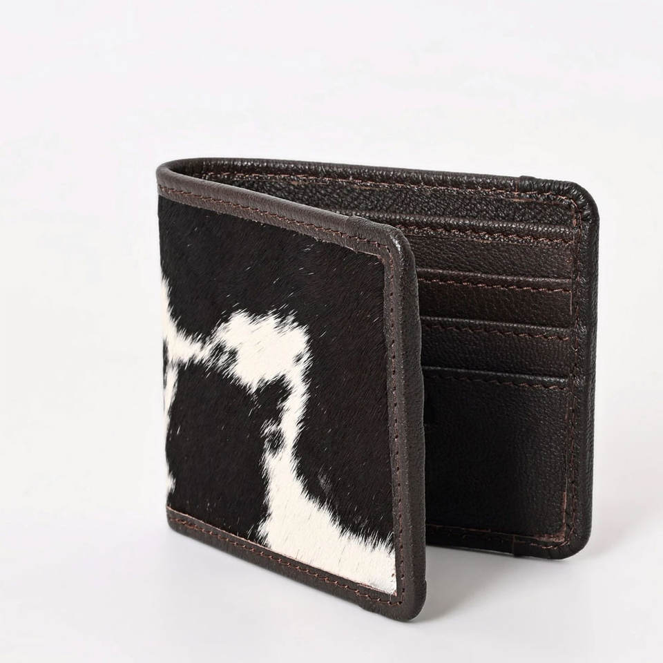 Cartera de cuero vacuno duradera hecha a mano para hombre, cartera de cuero con pelo, diseño delgado, billetera plegable, cuero de primera calidad