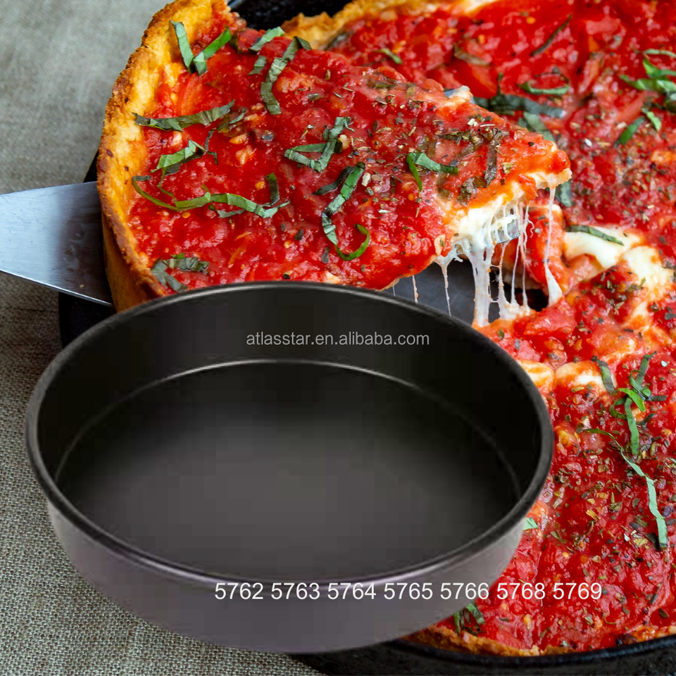 Bandeja para pizza anodizada dura duradera de 7 pulgadas de profundidad, utensilios para hornear redondos de acero para pizza de corteza crujiente, panes planos y galletas gigantes