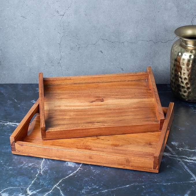 Bandeja de Servir de Madera Resistente, Diseño Elegante de Estilo Moderno, Bandeja de Madera para Cocina, Baño, Vajilla, Apta para Lavavajillas, Tallada para Comedor