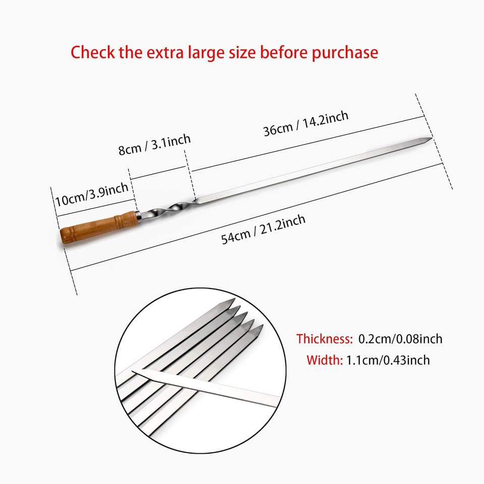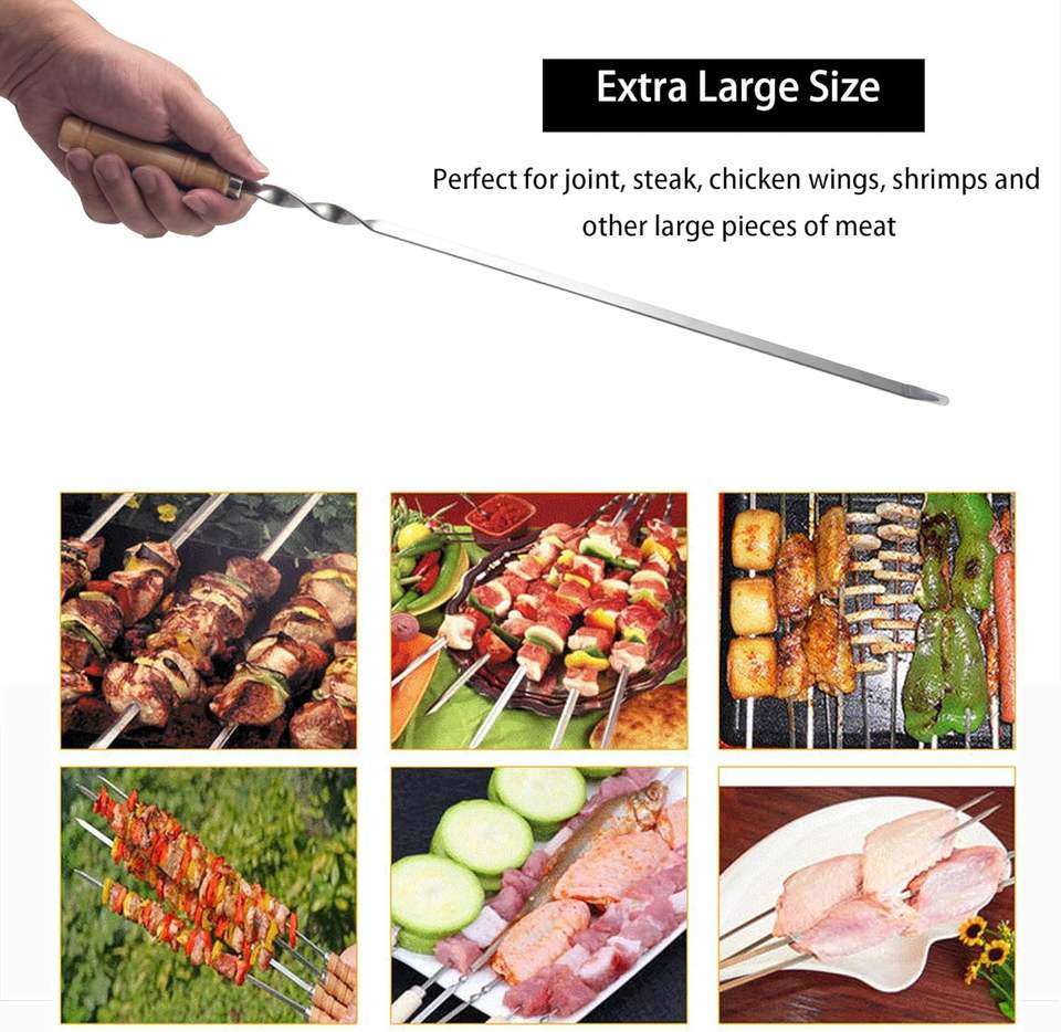 Juego de Brochetas de Acero Inoxidable Resistentes al Calor (Más de 12 Unidades) con Mango de Madera para Carne, Camarones, Pollo y Vegetales