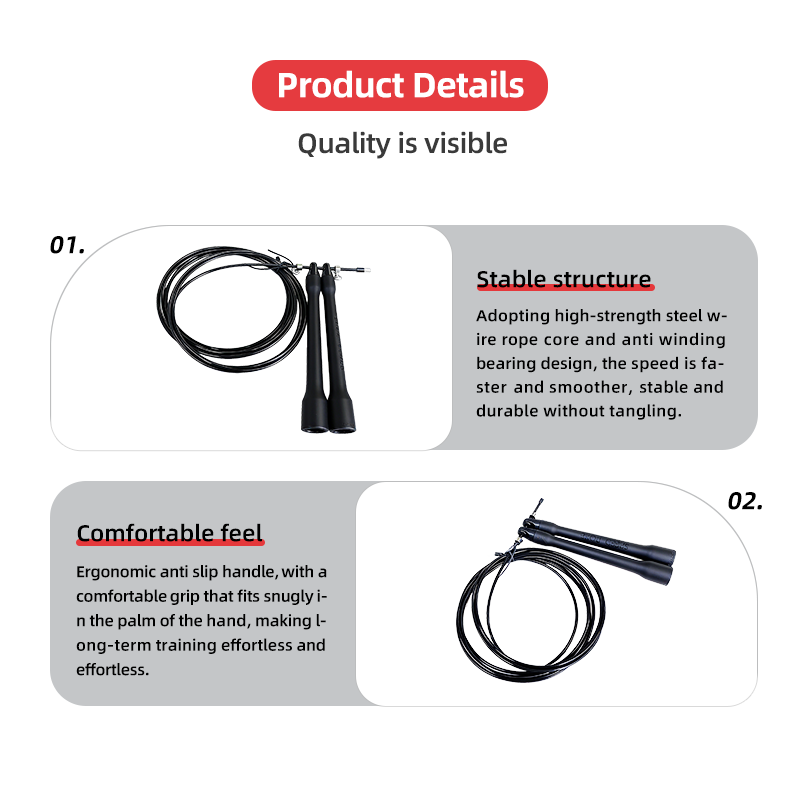 Cuerda de saltar duradera Entrenamiento físico MMA y entrenamiento cruzado Cojinete doble Cuerda WOD de ultra velocidad negra