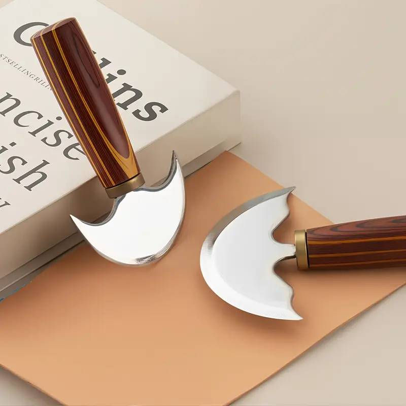 Cuchillo Cortador de Cuero Duradero con Mango de Madera Maciza, Cuchillo de Cuero de Borde Curvo para Corte Profesional de Artesanía