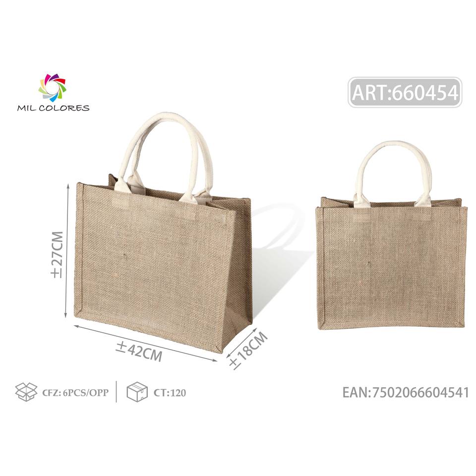 Bolsa de mano de lino duradera Lona de tamaño mediano Patrón personalizado o estampado con asa beige Reutilizable para uso diario