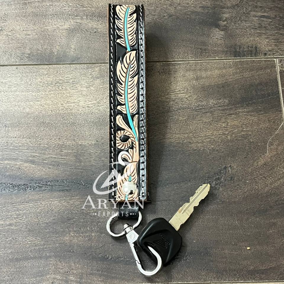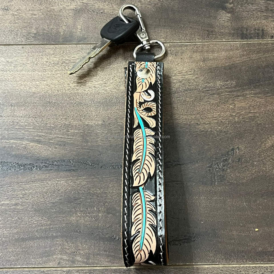 Nombre del Producto:Lanyard de llavero de pulsera de cuero de vaca herramientado a mano