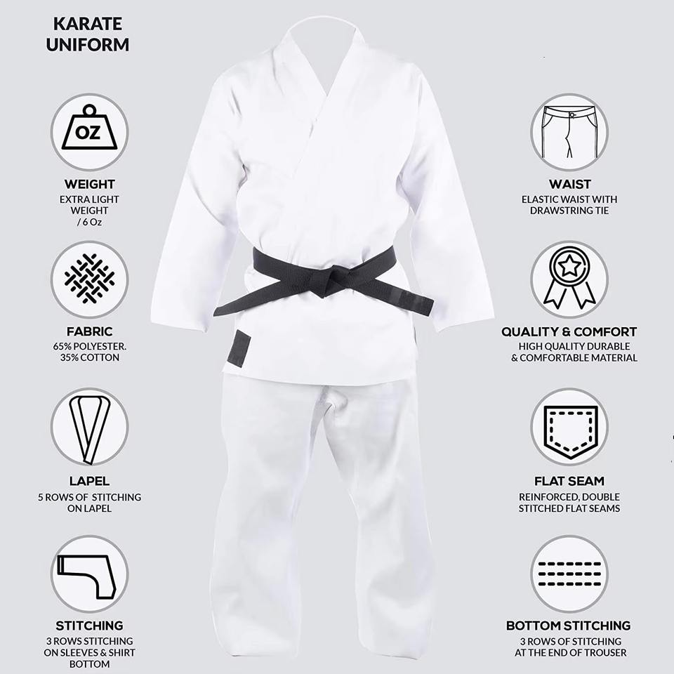 Durable Men's Karate Gi Sets Premium Spandex/Poliéster Uniforme Ligero Secado rápido Diseñado para principiantes de artes marciales