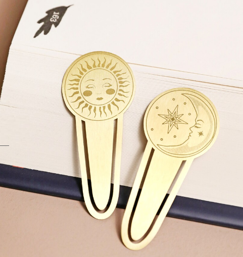 Marcapáginas de metal duradero con forma de hoja y acabado dorado Profesionales ocupados y estudiantes Biblioteca universitaria