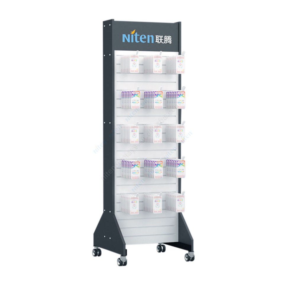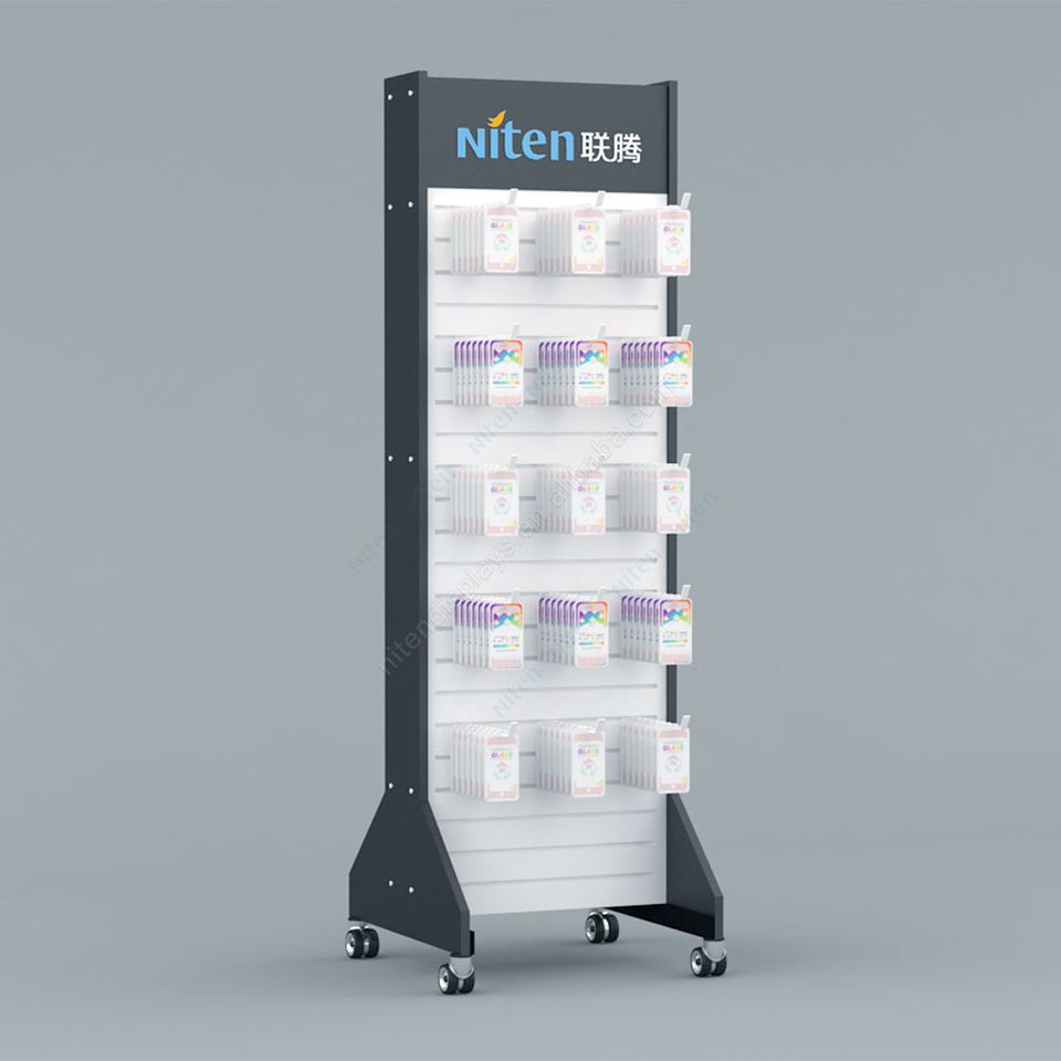 Estante de exhibición rodante de accesorios de metal duraderos para pantallas de piso de personalización de auriculares móviles para tiendas y centros comerciales