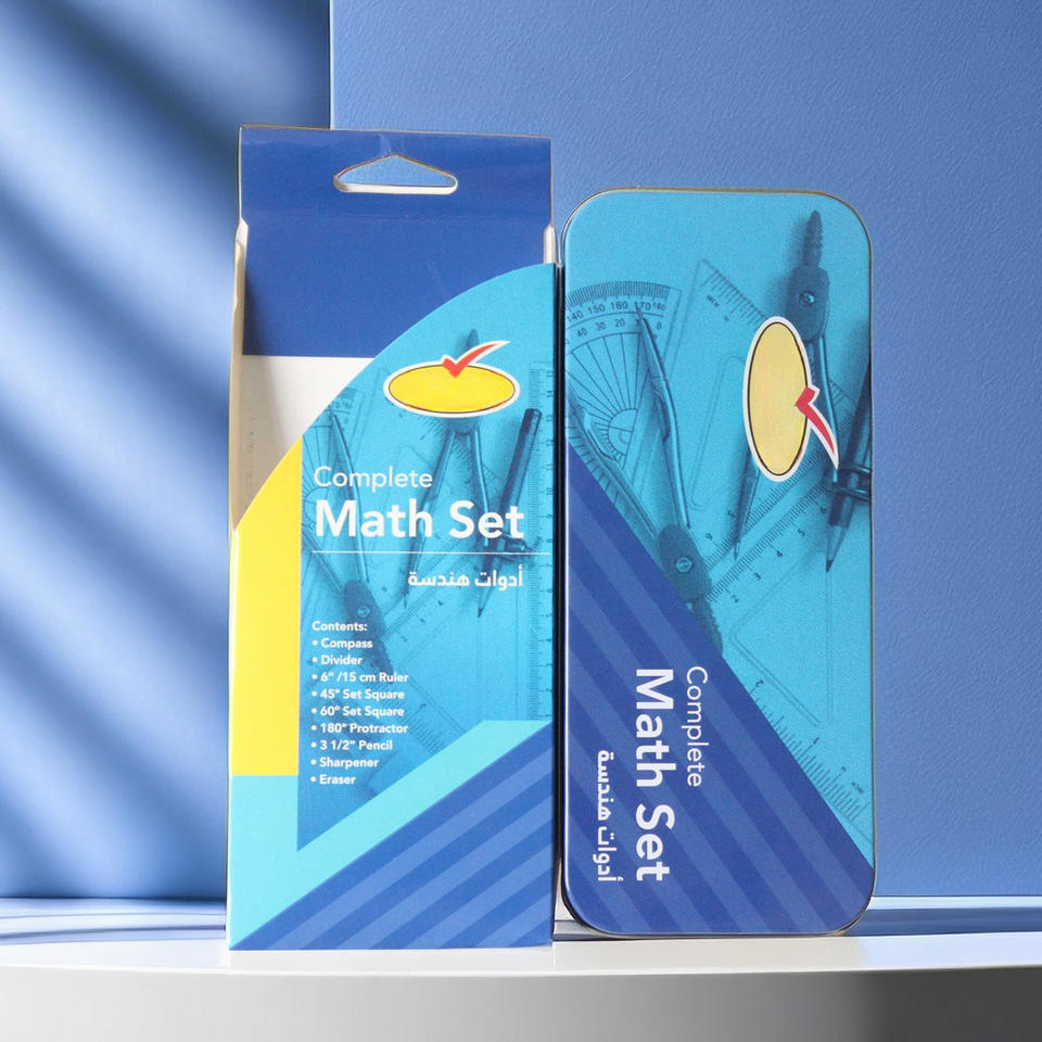 Juego de geometría de metal duradero para estudiantes de escuela primaria y secundaria Papelería de caja de hierro con brújula