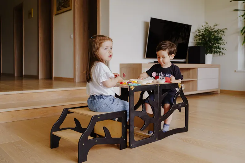 Durable Montessori Help Tower Taburete de actividad de aprendizaje de madera para dormitorio Cocina Escuela y granja para uso en jardín de infantes