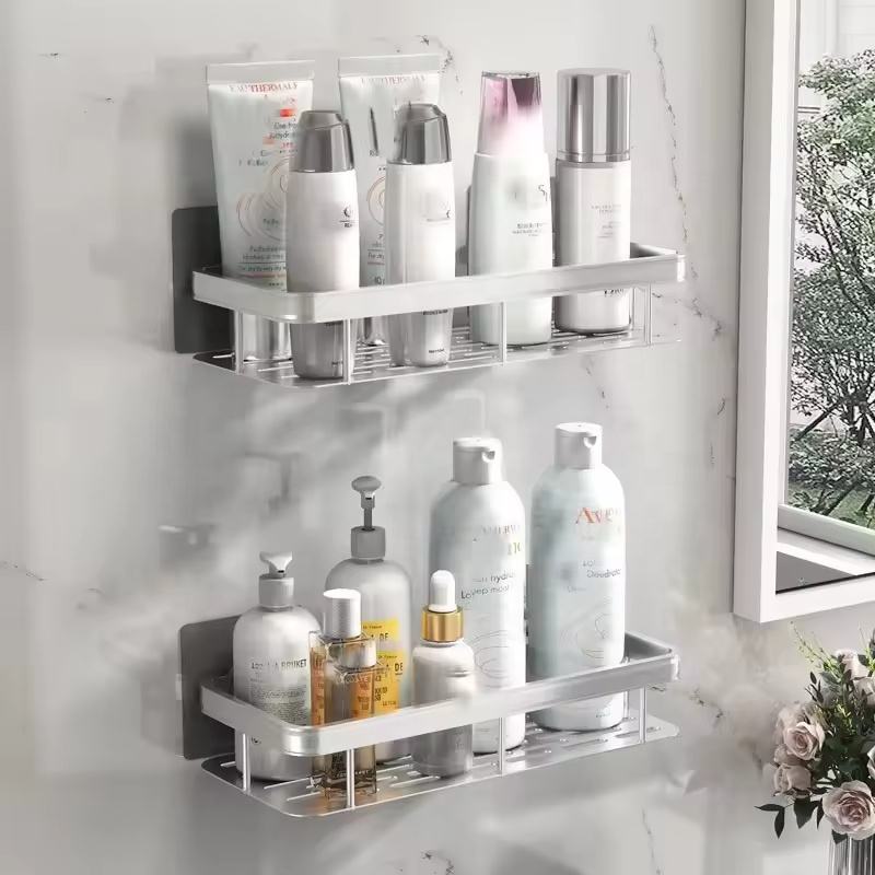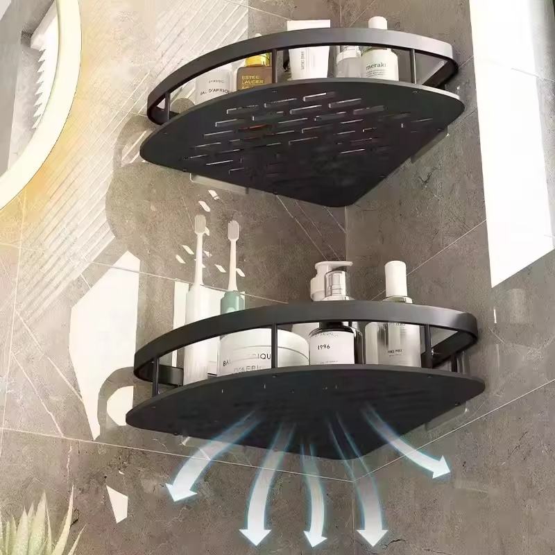 Estante de almacenamiento de estante de esquina de aluminio para baño montado en la pared moderno de uso múltiple duradero