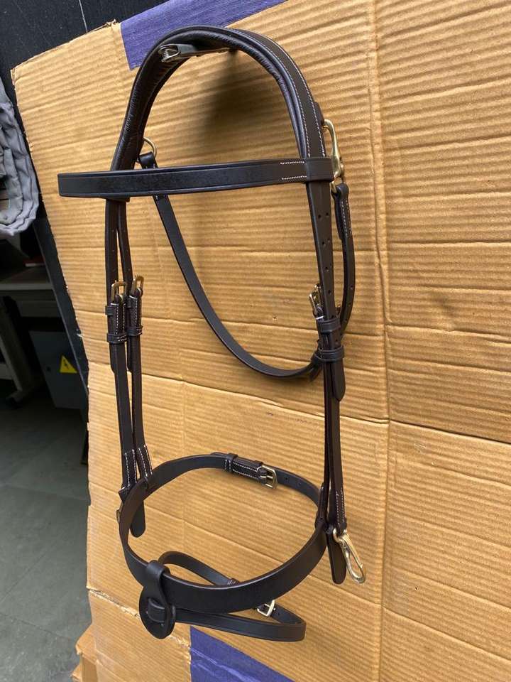 Brida inglesa de PVC duradera para montar en carreras, equipo ecuestre occidental con costuras elegantes, filete de cuero plano para caballos