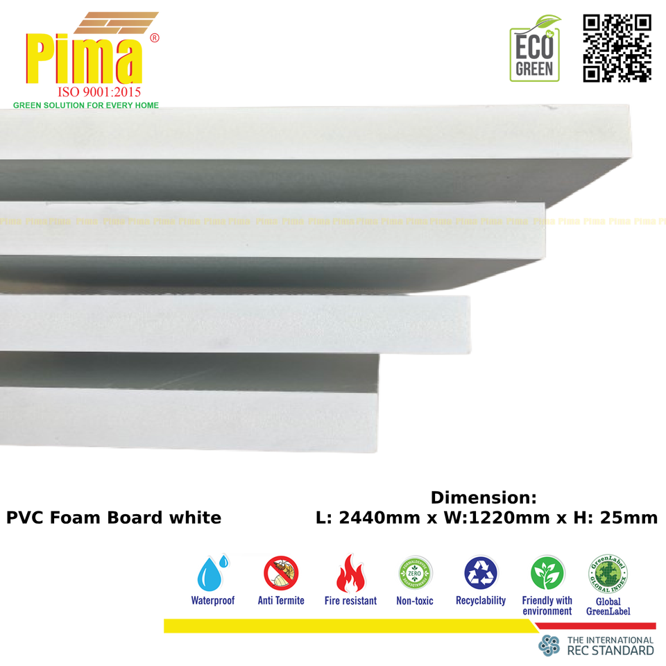 Hoja de tablero de espuma de PVC WPC duradera, 25mm de espesor, 0,6G/cm3, densidad, Color blanco, muebles de interior reciclables, paneles de pared para armarios, HS