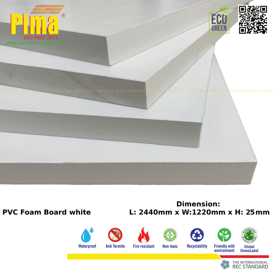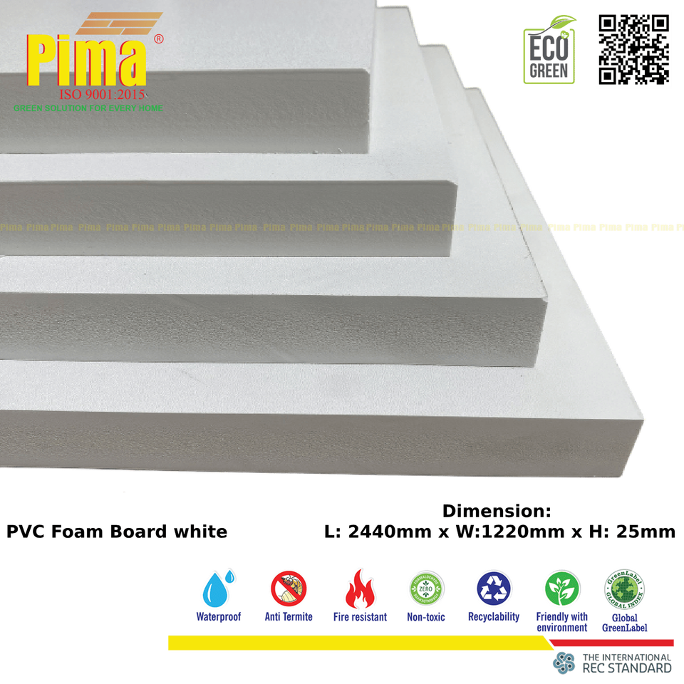 Hoja de tablero de espuma de PVC WPC duradera 25mm de espesor 0,6G/cm3 densidad Color blanco tableros de revestimiento ligeros para publicidad