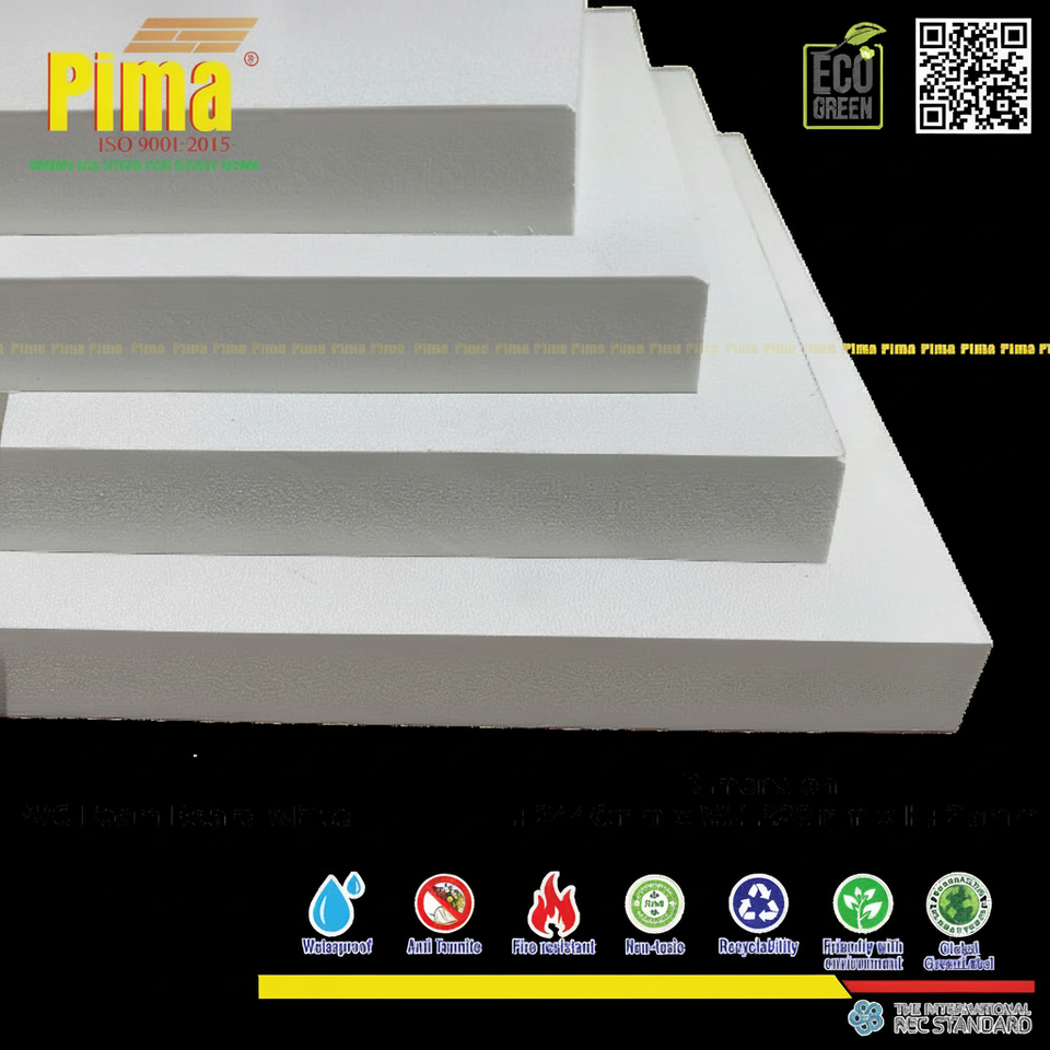 Lámina de Espuma de PVC WPC Resistente, 25 mm de Espesor, 0.6 G/cm3 de Densidad, Color Blanco, Superficie Anti-Termitas, Materiales Impermeabilizantes Pima