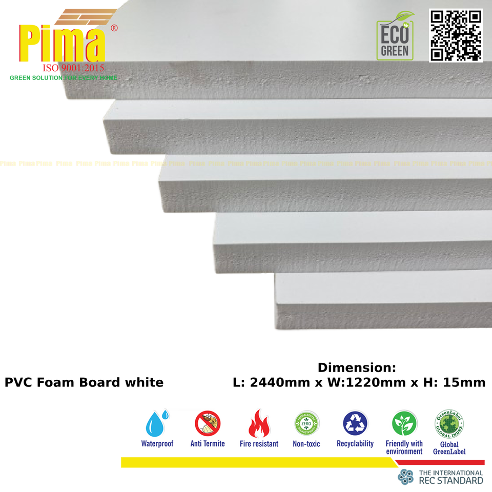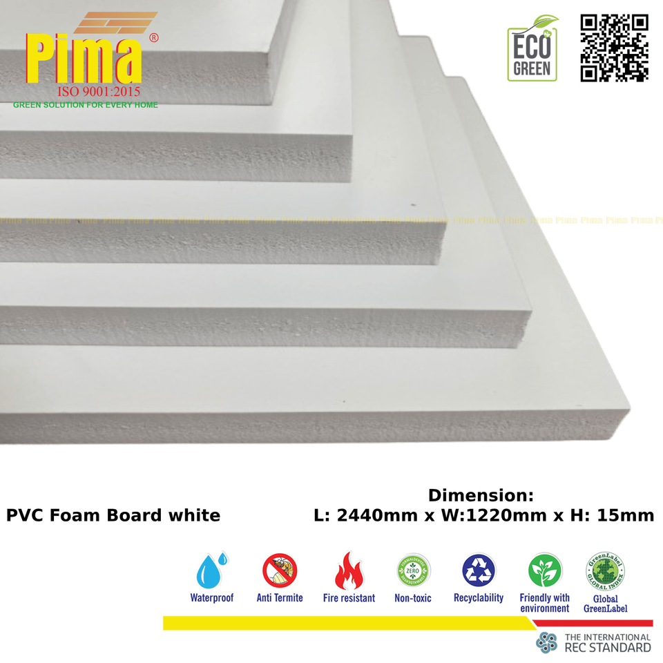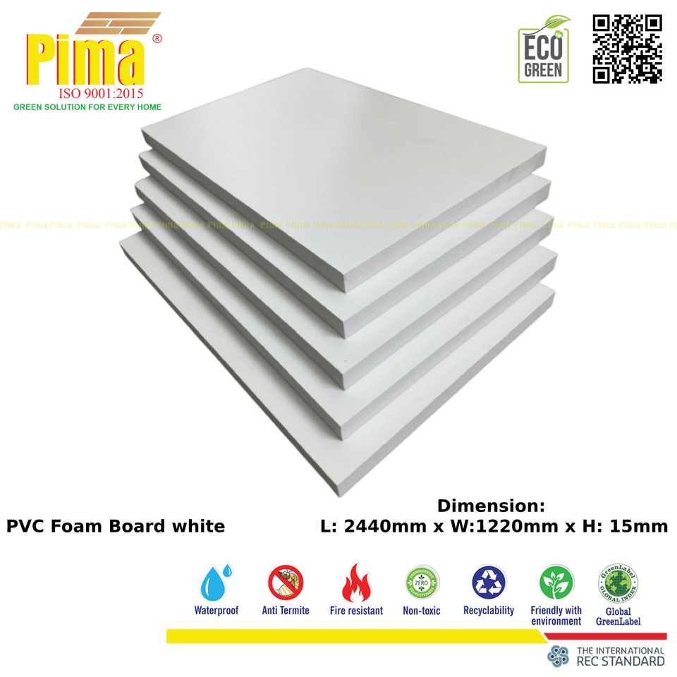Hoja de tablero de espuma de PVC WPC duradera, 8mm de espesor, 0,6G/cm3 de densidad, Color blanco, tableros publicitarios de plástico duraderos para uso en la cocina