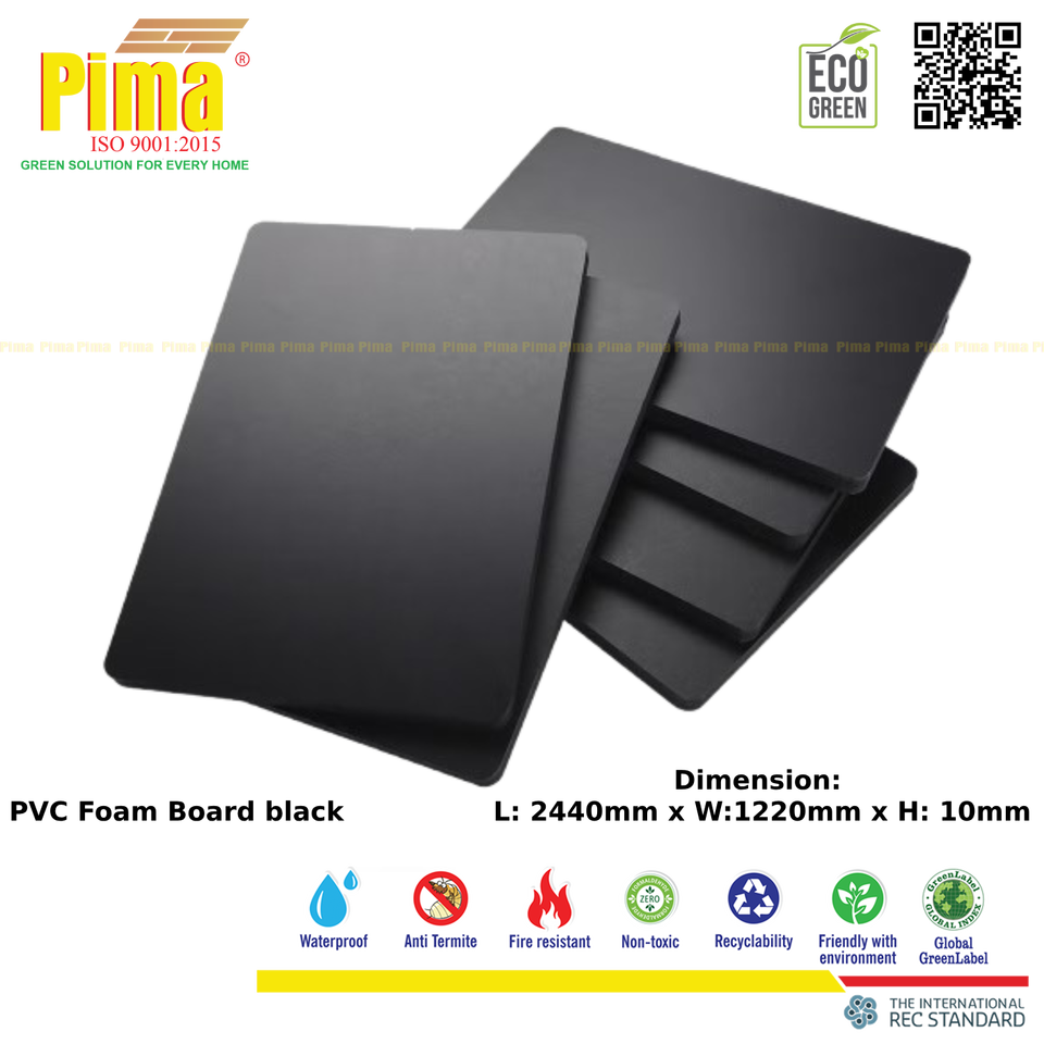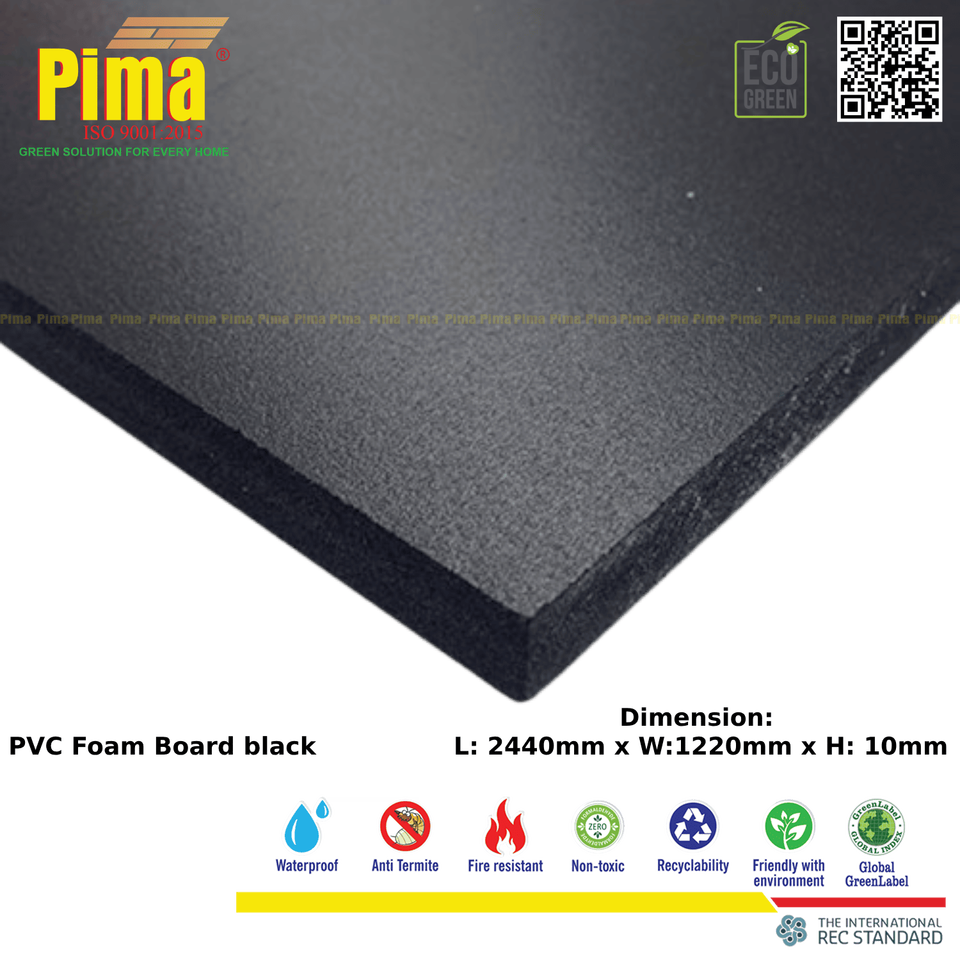 Paneles de espuma WPC de PVC duraderos para muebles de cocina, 10mm de espesor, 0,6G/cm3 de densidad, Color negro, acabado liso, contenido sin plomo