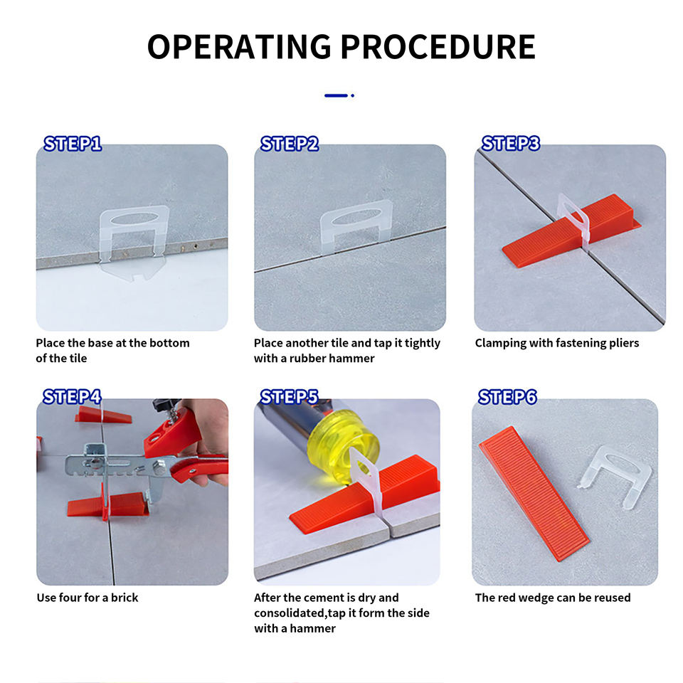 Palabra clave:Kit de sistema de nivelación de azulejos, espaciadores, herramientas, pared, suelo