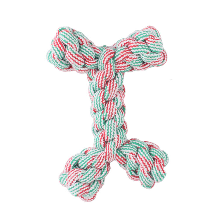 Cuerda de algodón de felpa duradera, juguete masticable para perros, entrenamiento interactivo, mordedor para cachorros, diseño de hueso, juguete interactivo para Navidad