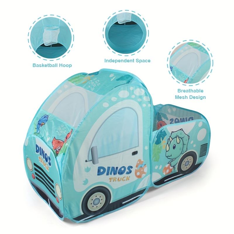 Tienda de Campaña de Poliéster Resistente con Diseño de Malla Transpirable, Tienda de Juegos Infantil con Diseño de Dinosaurio Azul y Aro de Baloncesto