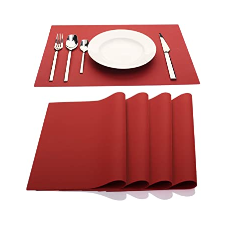 Tapetes de mesa para comedor, Mantel Individual de tela de fieltro de cuero de color rojo personalizado, artesanía natural