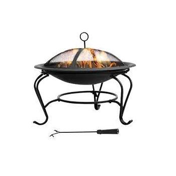 Brasero Redondo de Metal Resistente y de Alta Calidad, Brasero Grande para Exteriores, para Leña, con Palo para Leña