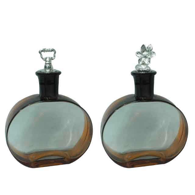 Botella de perfume de vidrio de alta calidad Botellas de perfume de vidrio grandes Botella de perfume de vidrio con tapa de metal decorativa