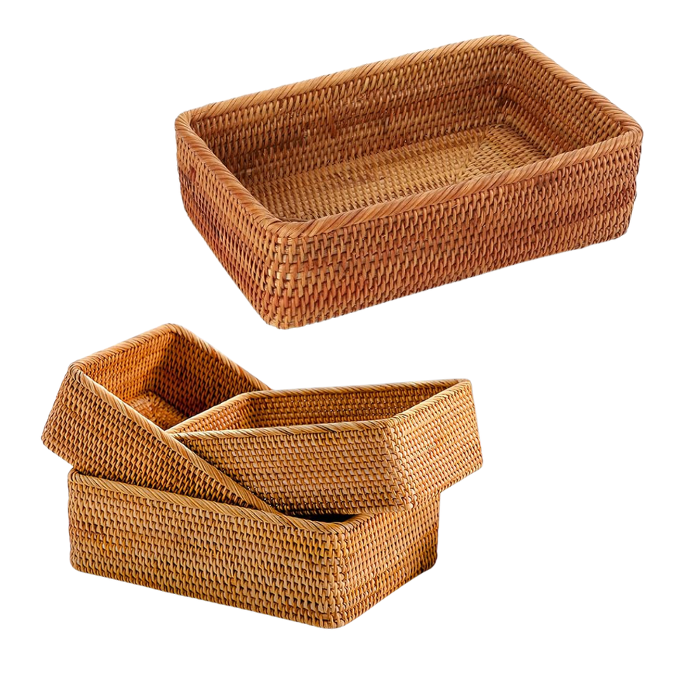 Cesta/Bandeja Rectangular de Mimbre Resistente, Tejida a Mano, Ecológica, para Uso Versátil, Decoración del Hogar, Artesanía de Vietnam