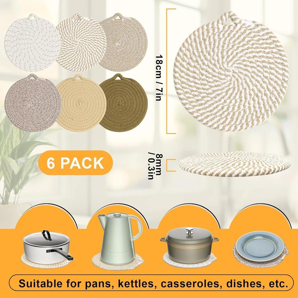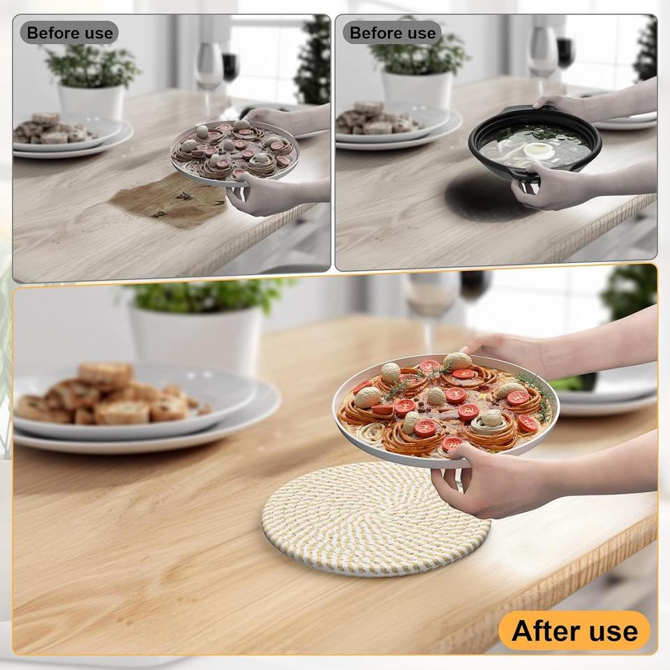 Posavasos Redondos Reutilizables y Duraderos de Poliéster y Algodón, 300 mm de Diámetro, Diseño Contemporáneo para Encimeras de Cocina y Mesas de Comedor