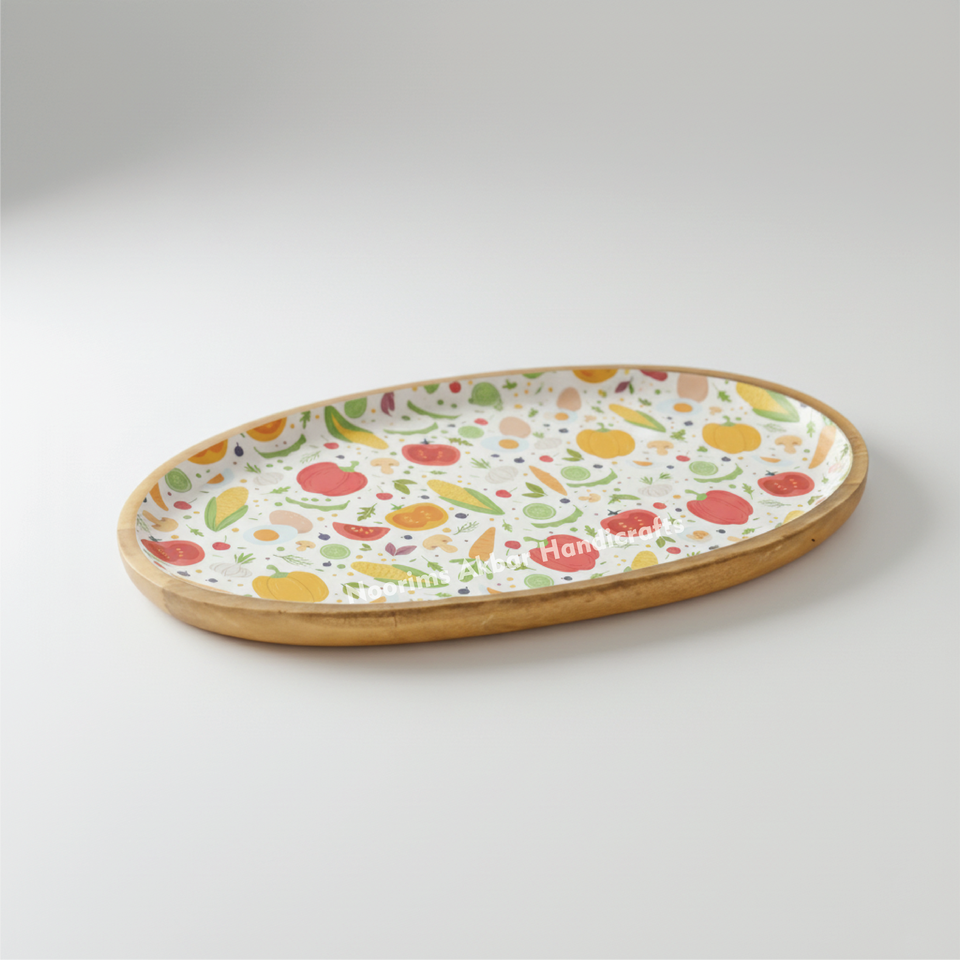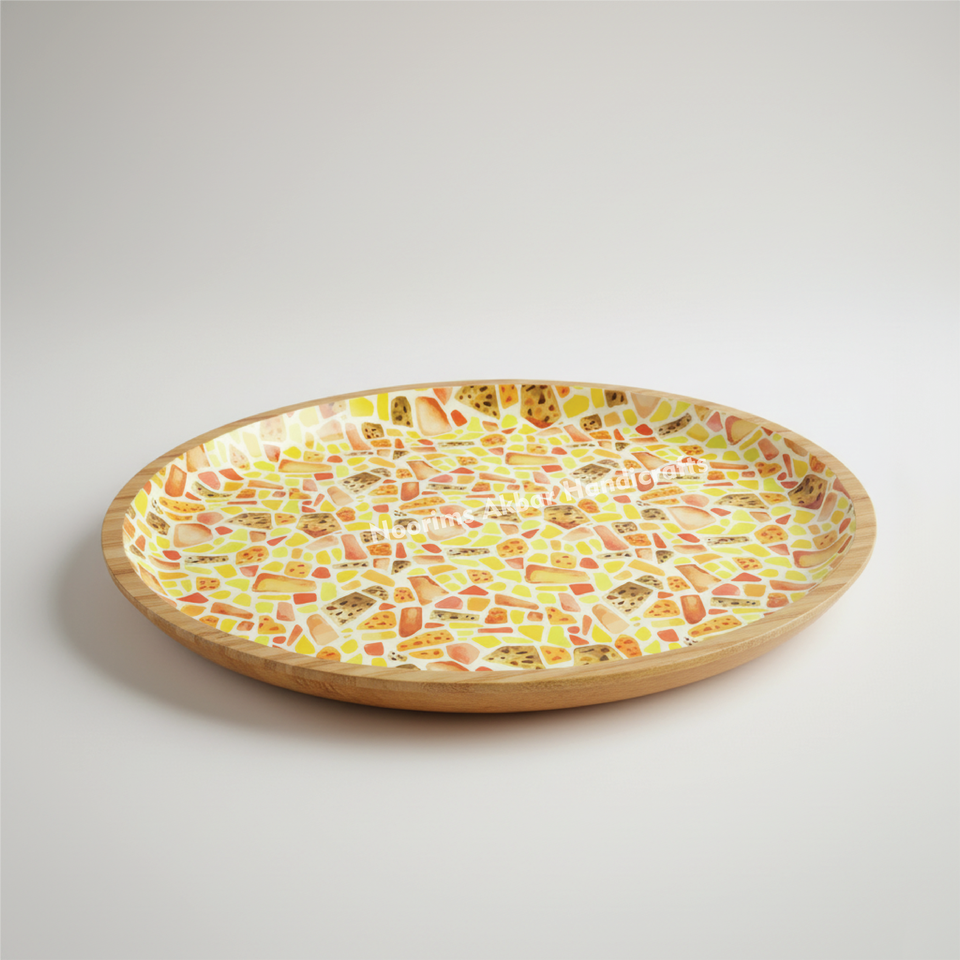Platos Redondos de Madera Esmaltada Duraderos, Diseño Natural Sostenible, Plato Seguro para Comer y Servir, Estilo Atemporal, Proveedor Mayorista