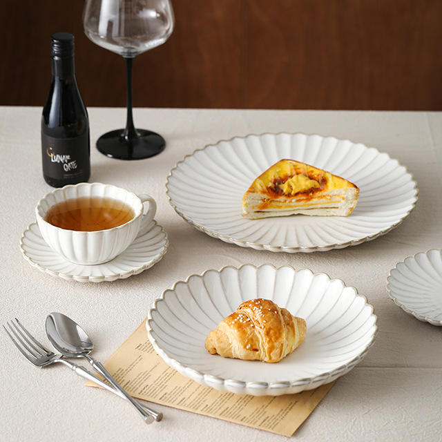 Juego de Vajilla de Cerámica con Borde Plateado, Resistente y con Diseño Ondulado, para Cafeterías, Bistrós y Servicios de Catering, Compra al por Mayor