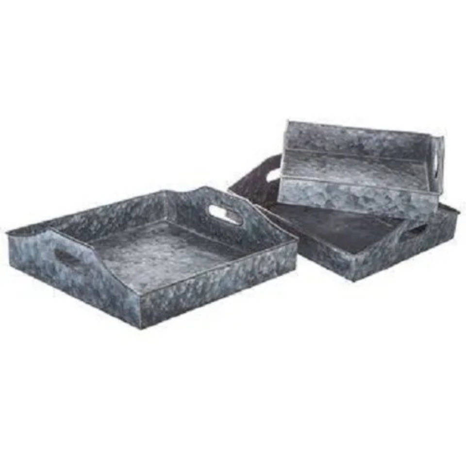 Bandeja Rectangular Rústica y Duradera de Metal Galvanizado con Asas, Acabado de Zinc Envejecido, Apta para Alimentos, Plato de Exhibición de Acero